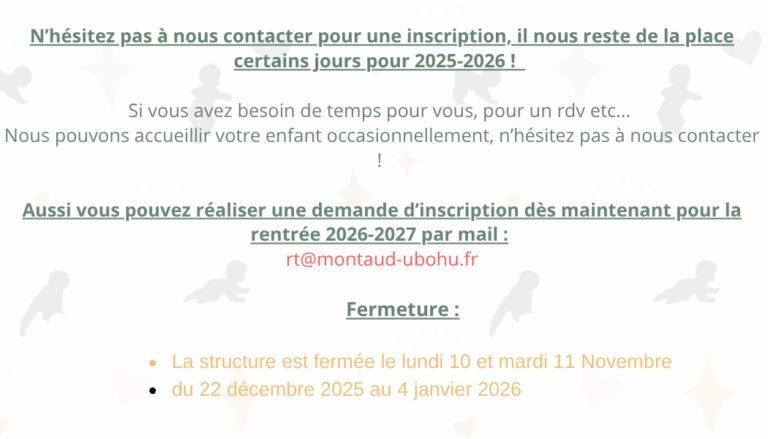 en accueil régulier ou occasionnel, n'hésitez pas à prendre contact !